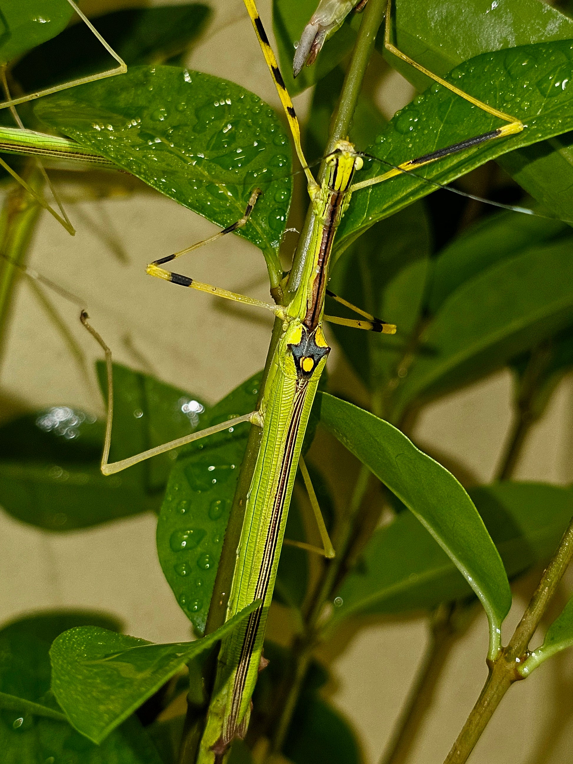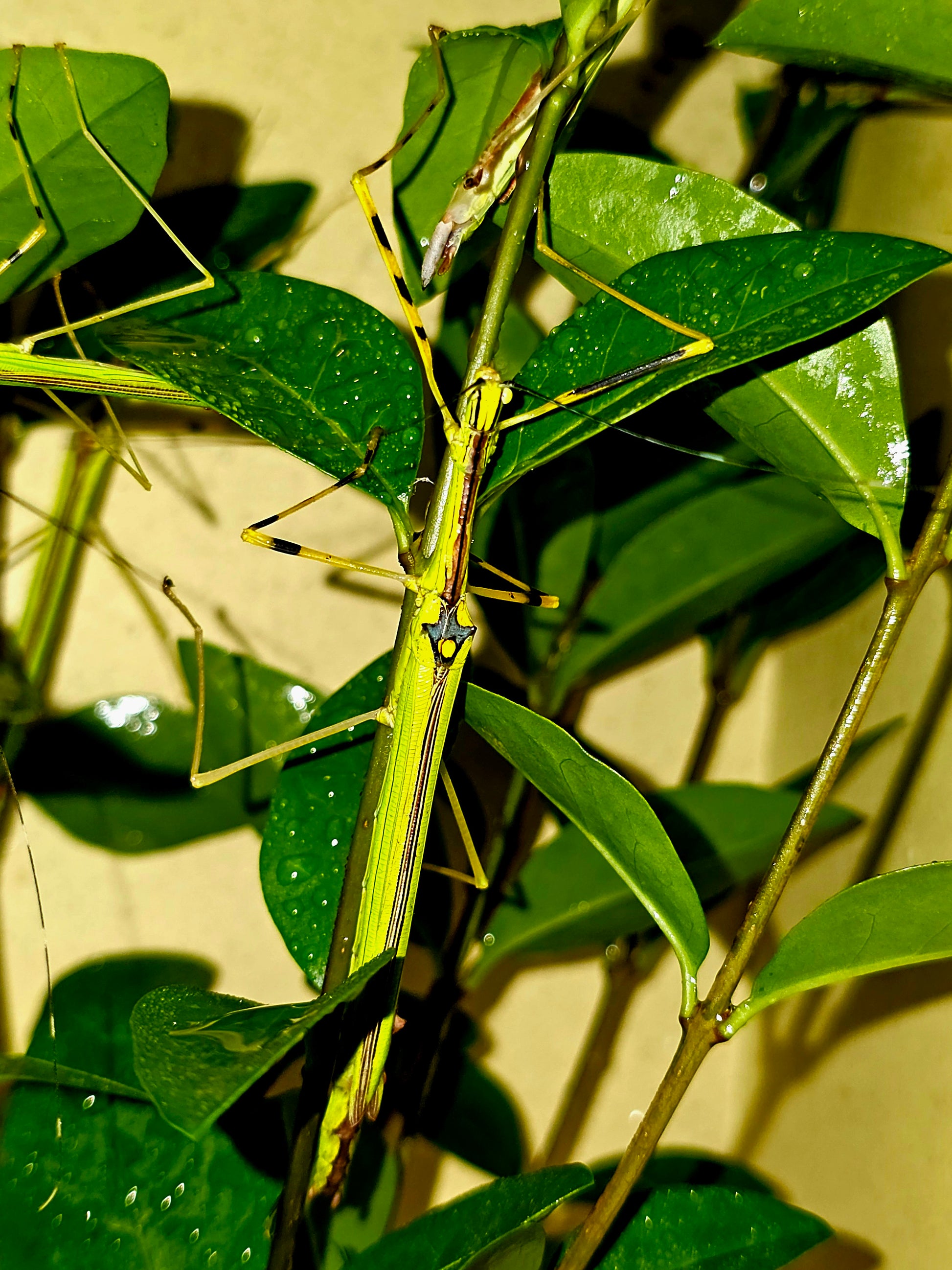 Remarque particulière: Les femelles pondent des œufs en formes de cornes qui sont plantés dans une structure molle... Je conseille donc de mettre des bloque de mousse florale dans le terrarium.