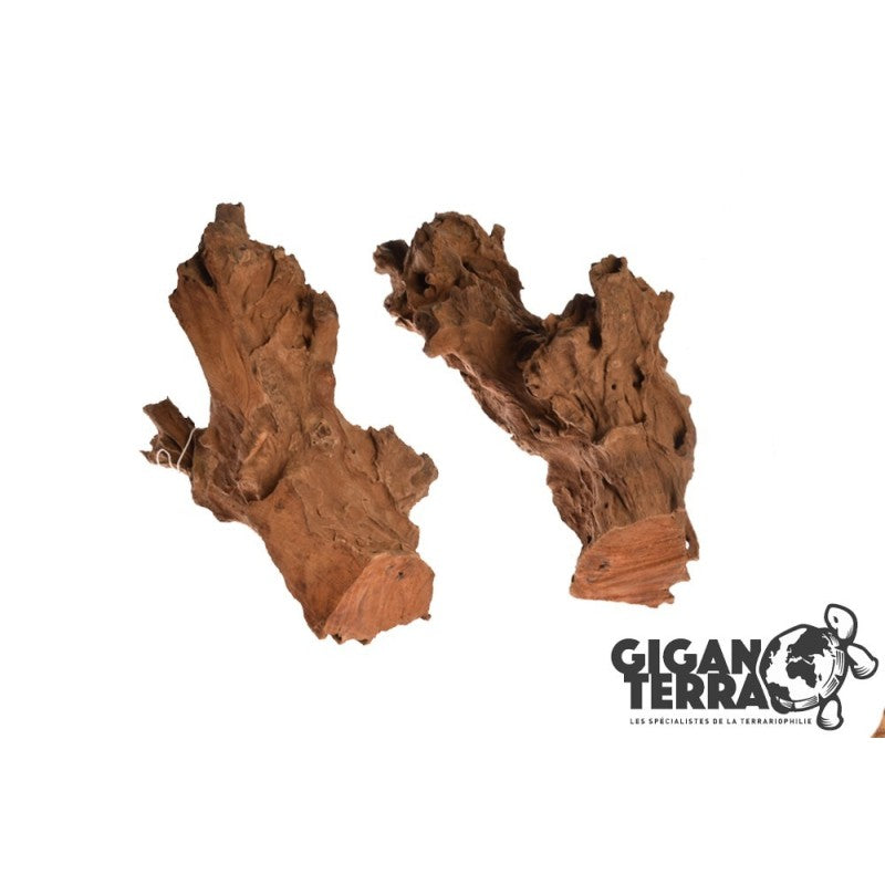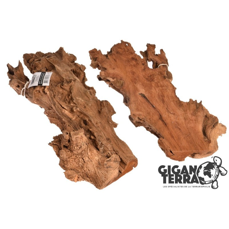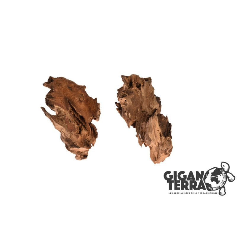 Racine aux formes variées avec un côté coupé. Idéale pour fixer sur un fond de terra ou pour poser directement au sol.
